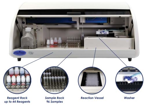 Hệ thống có thể phân tích sinh hoá và ELISA hoàn toàn tự động trên cùng một thiết bị, được điều khiển bằng máy tính